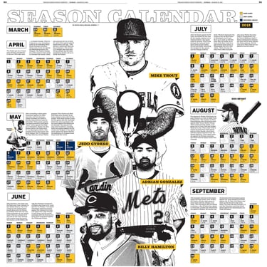 September 2004 to July 2006 and April 2015 to August 2022: In my role as News Designer II in the Visuals department, I focused primarily on Sports coverage while producing original illustrations and visual assets for News, Business, Home & Garden, Arts, and other editorial sections across print and digital platforms.